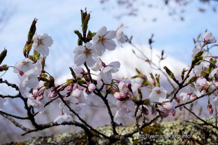 忍野村お宮橋付近の桜も見頃に