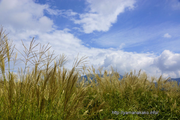 今日も雲が多めで富士山は見えていませんので、少しの青空と雲をバックにススキを入れてみました。夏が終わりに近づきススキの穂もずいぶんと開いてきて、風に揺れていました。