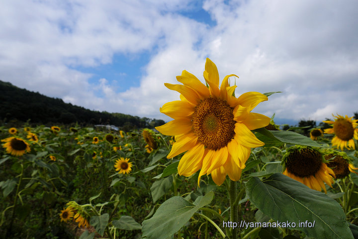 長らく咲いていた花の都公園のひまわりですが、ほとんどが下を向いてしまい、今朝は刈り取りが行われていたので、写真の畑も今日明日の内に耕されてしまうと思います。ただ、富士山初冠雪の頃にひまわりが咲く年もあるので、今年もその頃にまた咲くかもしれません。