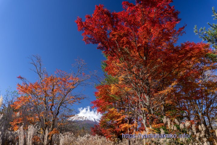 昨日の雨で多くの葉が落ち、山中湖周辺の紅葉は終盤となりましたが、写真のようにまだきれいに色付いている木も残っています。葉が落ちたらもう冬です。
