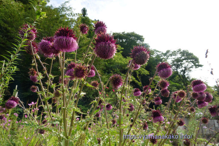 22年09~12月 フジアザミ 2022年9月13日 山中湖人 コメントする 満開のフジアザミそろそろフジアザミが咲くだろうと、界隈を回ってみたところ、この写真の場所だけもうピークのように咲いていましたが、まだ早いようで他ではほとんどが蕾でした。そしてフジアザミが咲く頃には人気のきらら前には小さい株しかないので、今年は「きらら前のフジアザミ」のような写真は撮れそうにありません。 今朝の最低気温は18.3度で昨日より高く、昨日よリ早く20度を超えたので、今日も夏日となり日中は暑くなりそうです。 午前10時の状況 気温:24度 天候:晴れ Tweet Check Share on Tumblr