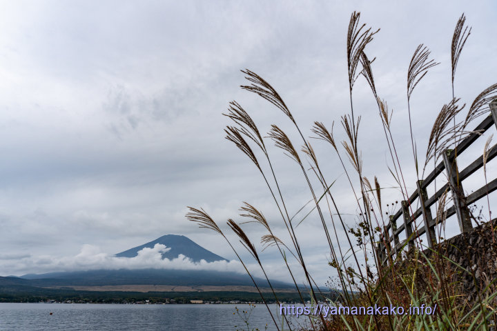湖畔からススキと富士山