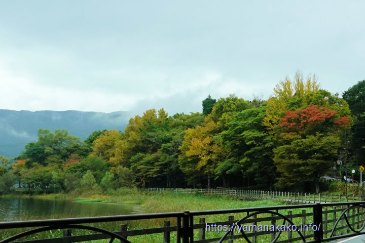 山中湖界隈ではだんだんと色付いた木を見かけるようになり、今朝は平野ワンド沿いの木々が、赤や黄色に色付いてきました。湖から見ると水面に映ってきれいだろうな~と、思いながら車道から撮ってみました。
