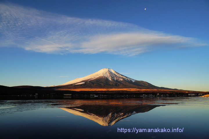23年01~04月 きれいな逆さ富士 2023年1月12日 山中湖人 コメントする 逆さ富士1月3日の投稿と同じように、氷の上に水が載って平らな鏡面となり、きれいな逆さ富士が見られました。 昨日の予報だと今朝はあまり冷え込まないとのこと(記憶違いかな~)でしたが、今朝の最低気温は-8.9度で昨日よリ若干低くなりました。ただ日が出てからはぐんぐんと上昇し、すでに昨日の最高気温の7.5度を超え、暖かくなってきました。 午前10時の状況 気温:8度 天候:晴れ 道路状況:山中湖周辺の主要道路に凍結はありません Tweet Check Share on Tumblr