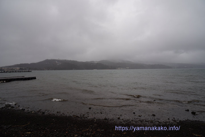 23年01〜04月 今日は雨降り 2023年3月13日 山中湖人 コメントする 雨の山中湖今日は朝から雨が降っていて、富士山はおろか対岸も見えないような状況です。雨が小降りならふきのとうでも撮って(採ってではありません)こようかと思いましたが、9時頃はかなり降っていたので断念しました。 土日の朝は氷点下となりましたが、日中は15度前後まで上がり、暖かな週末となりました。今朝は最低気温が6.6度と冷え込みませんでしたが、そこからあまり気温は上昇していません。午後から雨はやむ予報となっており、気温も多少上昇するようですが、昨日一昨日ほど上がらないようです。 午前10時の状況 気温:8度 天候:雨 道路状況:山中湖周辺の道路に凍結はありません Tweet Check Share on Tumblr