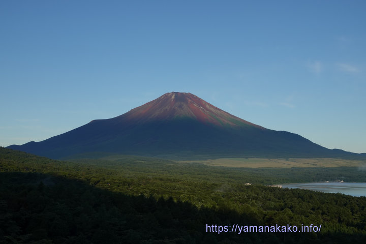 その雨のせいで空気が洗われて、きょうはすっきりとした富士山が見られました。雨が降ったので、赤富士を期待しましたが、いまいちでした。