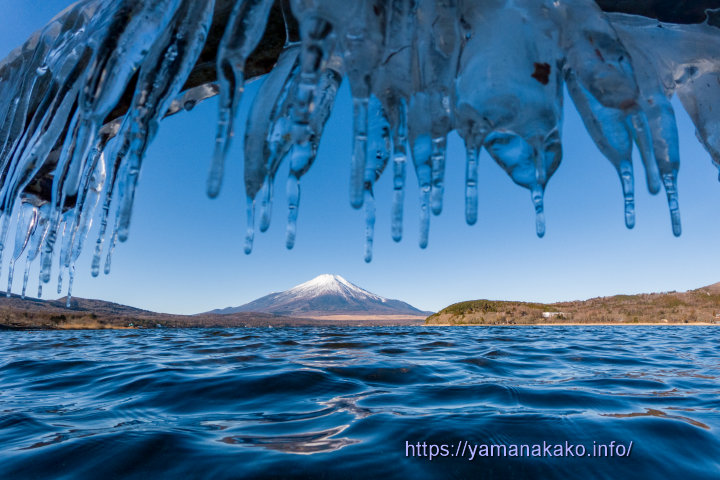 湖畔の氷と富士山昨日から風が強く気温が低めだったので、湖畔には氷のオブジェができていました。今朝の富士山には昨日のようなモヤモヤ雲がかかっていず、未だにすっきりときれいに見えています。