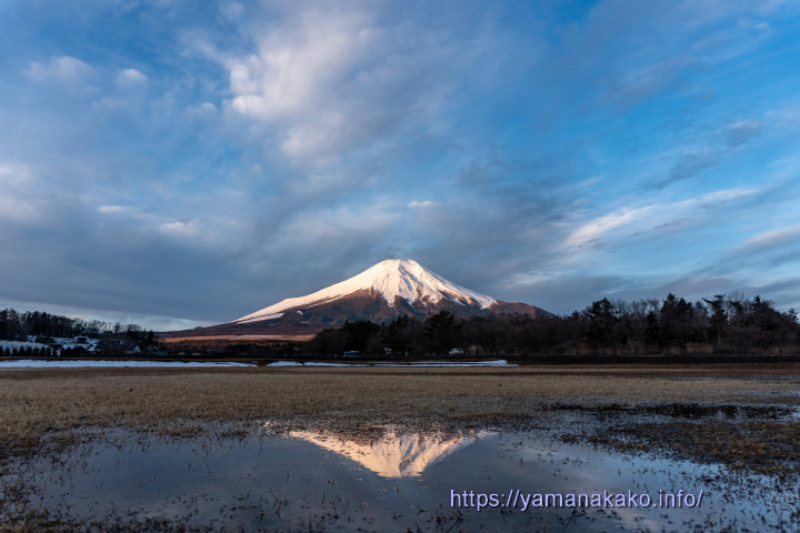 氷の狭間に映る逆さ富士昨日は寒かったのでたくさんのキラキラ氷ができてるかと思いましたが、思いのほか氷は少なかったのですが、氷の狭間に逆さ富士を見ることができました。もうすぐ2月も終わりなので、こんな景色が見られるのもあとわずかかと思います。