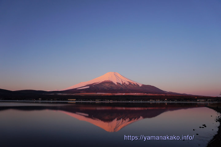 満月とピンク富士今日は山中湖畔から富士山頂に月が沈むパール富士が見られる日でしたが、その時間は富士山に日が当たらないので、少しずれた場所から紅富士と月を撮ってみました。昨日の雨で空気が洗われて、富士山はすっきりくっきりときれいに見え、ピンク色に染まりました。