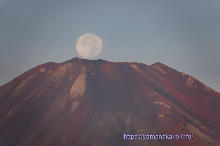 パール富士 今朝起きたら月がきれいだったので、富士山頂に沈む月を見ようと、月を見ながら移動して、明神山まで登ってみました。もう少し登ったところが真ん中に沈む場所でしたが、間に合いませんでした。