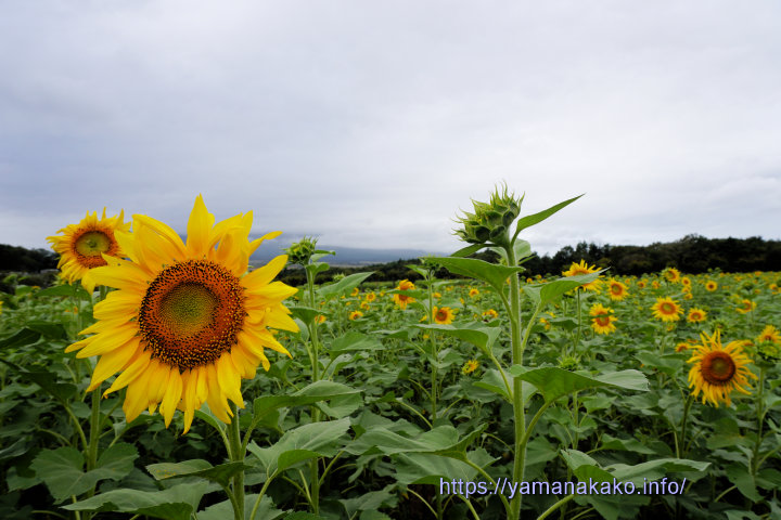 そんな今シーズン一番の寒さとなった朝ですが、花の都公園ではひまわりがだいぶ花開いてきました。先週確認したときにはまだほんの少しでしたが、今週には見頃となるかと予想しましたが、見頃となるのはもう少し先のようです。