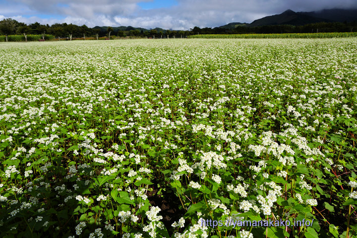 花の都公園のソバ今日の天気予報は昨日時点で晴れだったので、朝から富士山が見られるかと期待しましたが、残念ながら曇り空で、ほんの一瞬山頂が見えた程度でした。花の都公園では写真のソバの花の他に、ピンク色の赤ソバの花も咲いています。