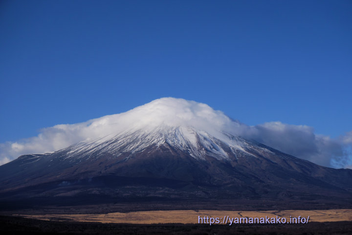富士山にかかるもくもく雲昨夜から富士山には雲がかかっていて、9時前には写真のような状況で綿帽子を被ったような雲となっていました。