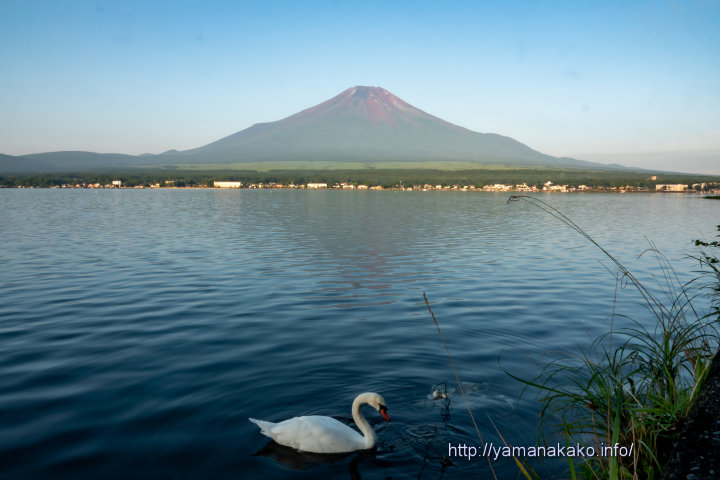 朝の富士山と白鳥久しぶりに朝から青空の下に富士山が見えて、夏富士って感じとなりましたが、白鳥もゲスト出演です。こんな風に見えたのは今シーズン初めてのような気が・・・。そして夏富士らしく、この1時間後には雲に遮られて見えなくなってしまいました。昨年の8月6日のような真っ赤な富士山(赤富士)が今年も見られるでしょうか。
