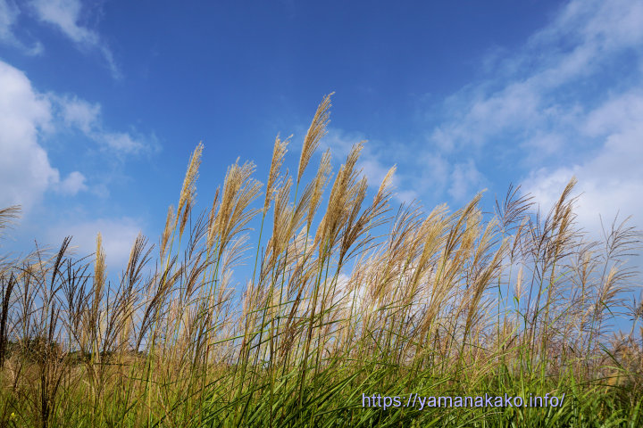 道端のススキまだ暑い日が続いていますが、赤とんぼが飛び、ススキの穂が出てきて、ちょっぴり秋の気配を感じます。ススキといえば、山中湖パノラマ台からのハイキングコースは、ススキに囲まれ、眼下に山中湖その向こうに富士山が見える好ポイントでおすすめです。