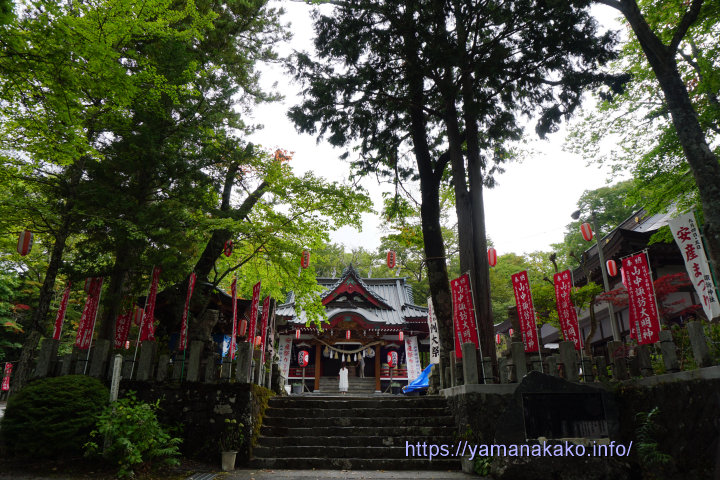 山中諏訪神社山中諏訪神社の例大祭、別名「安産祭り」が今日から開催されます。神社境内は2日から飾り付けなどが行われ、本日も朝から最終準備が行われていますが、雨予報なので神輿はまだ拝殿の中にありました。山中諏訪神社は、豊玉姫を祭神とする安産守護の神様。夜祭の神輿をかついだ氏子の女性には、安産が約束されると言われており、古くから妊産婦や新婚女性が集まるお祭りとして知られています。