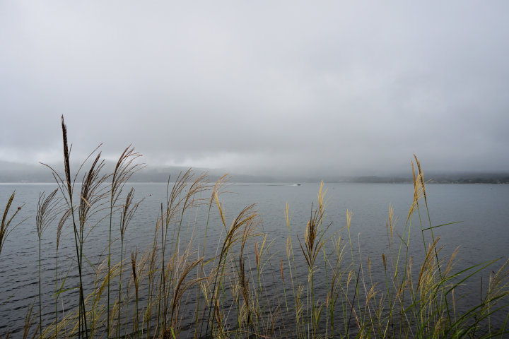 雨に煙る山中湖昨夜から雨が降ったりやんだりしていて、湖にはもやがかかって対岸がやっと見える程度となっています。今日はこの後もぐずついた天気の予報となっています。
