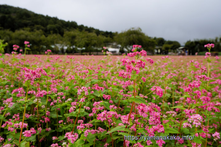 見頃となった赤ソバ花の都公園の赤ソバがだいぶ咲き揃ってきて、一面ピンク色となっています。この花は普通の白いソバの花とは違い、花期が長いのでしばらくはきれいに咲いていると思います。