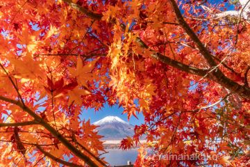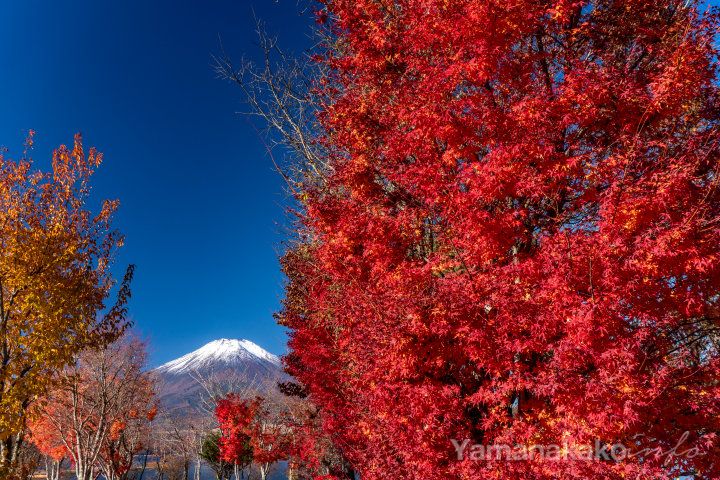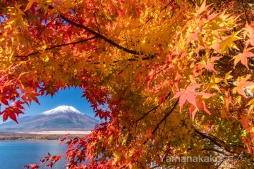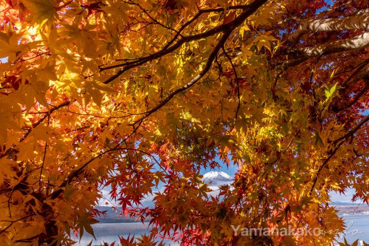秋になり、富士山から始まる紅葉はだんだんふもとの方に降りてきて、例年10月中旬頃から11月中旬にかけて山中湖では見頃となります。