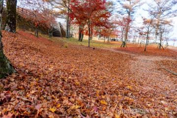 紅葉し始めるのも遅く、ピークは紅葉まつり会期のちょうど真ん中ぐらいの11月8日頃でしたが、きれいに染まっている期間は短かく、落葉しないで枯れてしまった葉も多々ありました。