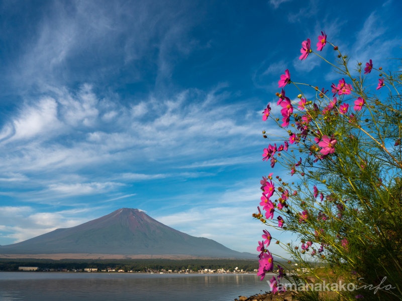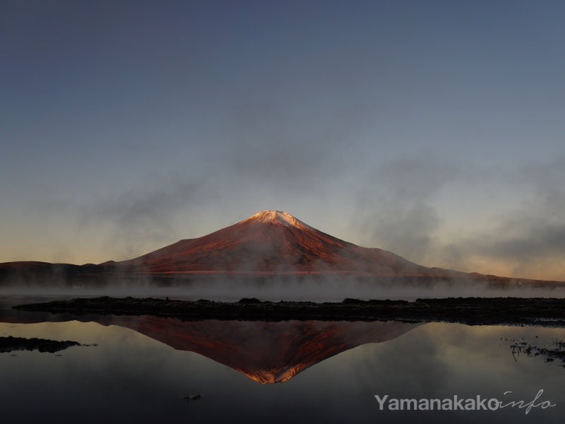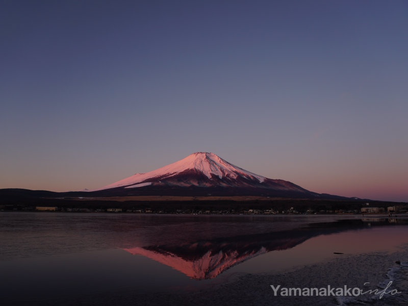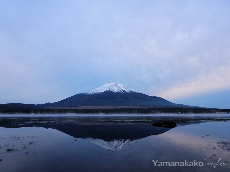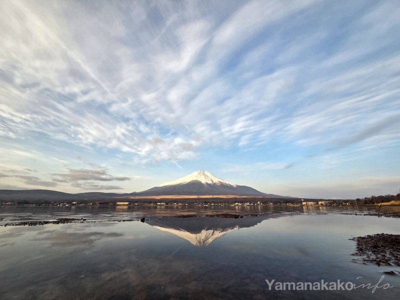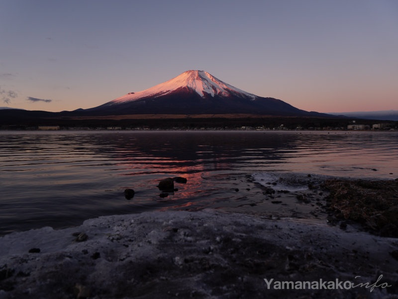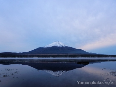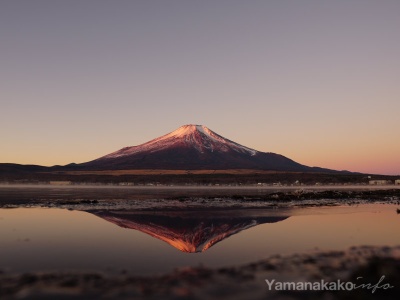 山中湖北岸の長池地区からは、湖越しに富士山を望むことが出来ます。11月上旬と2月の上旬は