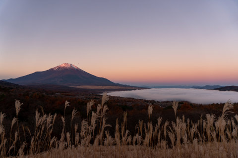 21日の早朝は雲一つない快晴となり、富士山に日が当たる前から、南アルプス方面にビーナスベルトと地球影が見られ、グラデーションがとてもきれいでした。